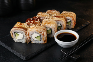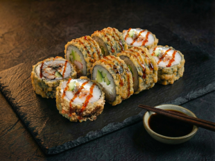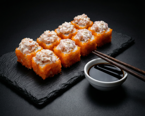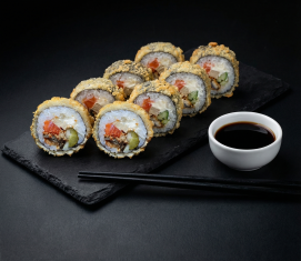 состав: креветки, курица(фарш), овощи. (соус темпура)